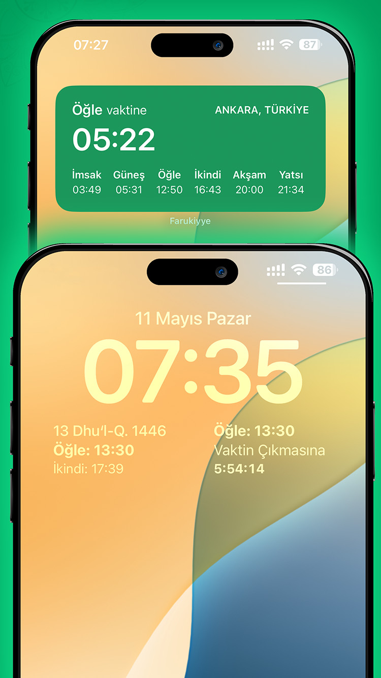 Ana ekran ve kilit ekranında namaz vakitlerini görüntüleyin ve bir sonraki namaza kalan süreyi anında görün.